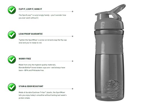 Slim 28-oz Odor-resistant BPA-Free Shaker Sport Mixer Bottle With Blending Ball Inside and Leak Proof Secure Top (GREY)