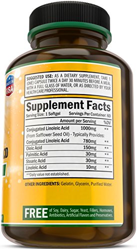 -. Feature : 100% MONEY-BACK GUARANTEE. We are so confident of our products that we will refund your money if you are not fully satisfied, no question asked! / HEALTHY WEIGHT MANAGEMENT. CLA is an essential fatty acid that's important for good health. Our product is an excellent source of 80% standardized CLA (1000mg of pure safflower oil per serving). It provides a Healthy weight management for men and women, with no side effects. / POWERFUL ANTIOXIDANT. Supplementing with Bradeson Naturals CLA is the best way to get these powerful and necessary antioxidant into the body. This potent antioxidant aids in reducing body fat deposits in turn helping with bodybuilding and weight loss, it also helps improve immune function and limits food allergy reactions. / SUPERIOR QUALITY. We specialize in nutritional supplements, and not only have high quality products but are also committed to producing the most innovative and scientifically formulated products. Our Manufacturing facility follows GMP guidelines to ensure the safest and most accurate product for our customers. / NATURAL & NON-GMO. Bradeson Naturals formula does not contain: binders, gluten, wheat, dairy, sugar, soy, hormones. You'll only get what you need! All our supplements are 100% MADE IN THE USA in an FDA-Inspected facility.