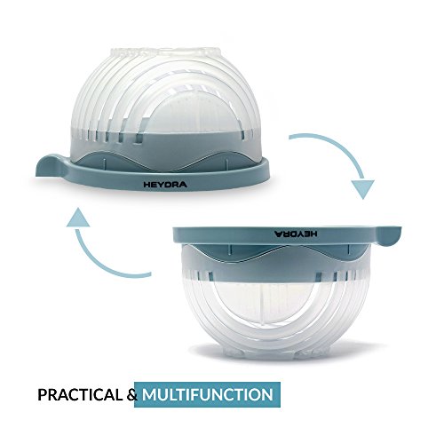 Premium Plastic Salad Chopper by Heydra, Salad Bowl Cutter, Fruit Vegetable Slicer, 60 Second Salad Maker, Colander