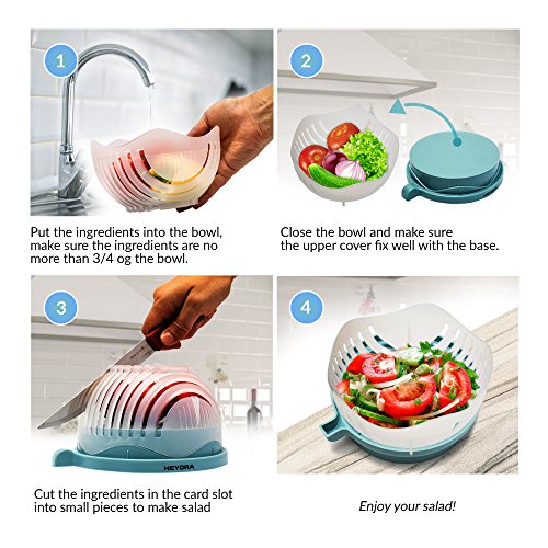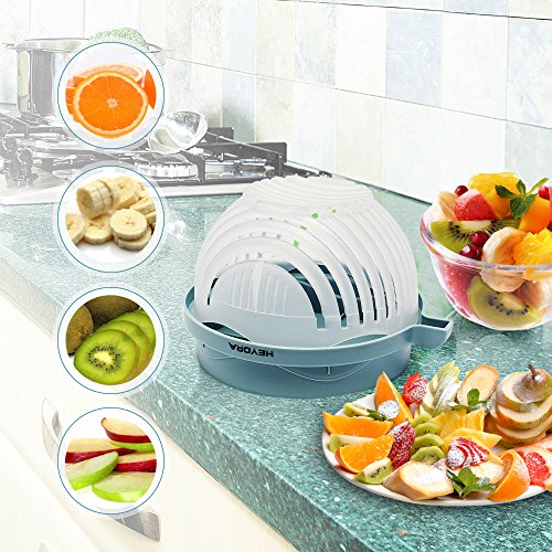 - EASY AND SIMPLE: Do you ever wish you could make a quick, and easy meal that is highly nutritious and low in calories and fat? Salad is always a healthy option. With this amazing Salad Bowl Cutter 8.3*5 in (21*12cm) you don’t ever have to waste time and energy whilst cooking. You can also use any combination of fruit or vegetable to masterfully create a variety of exuberant salads. This 60 second salad maker is exceptionally easy to clean simply by rinsing for 60 seconds with water.