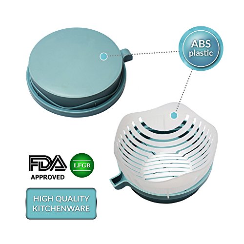 - EXQUISITE DESIGN: This innovative Salad Bowl design shapes perfect results in seconds by serving both the individual and up to two persons. There is no need to tire your hands cutting salad items or through the utilization of stiff kitchen appliances when making your salad. This fruit and vegetable slicer is collapsible and compact enough to store in the tightest of cupboards. In addition, you can always use this 60 second salad maker as a colander.