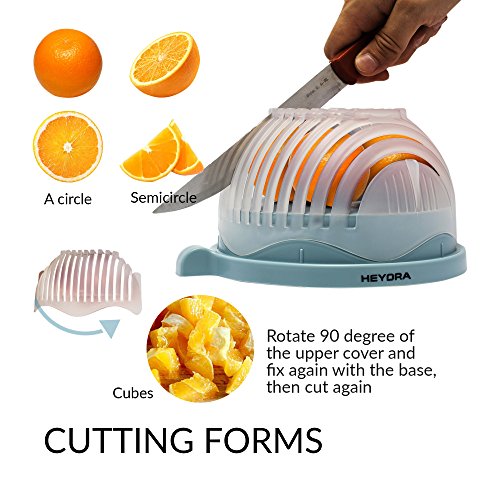 - CUTTING AFFECTS THE COOKING PROCESS: This amazing Salad Bowl Cutter includes all you need to enjoy your cooking to the maximum. Cutting affects the cooking process, aroma, and texture of the vegetable, which in turn can definitely influence our own perception of how it tastes. There is no need to pull out a ruler every time you chop a fresh salad. Keep the maximum taste of food and useful properties with this kitchen tool.