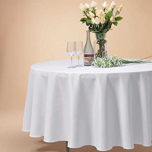 Remedios 132-inch Round Polyester Tablecloth Table Cover - Wedding Restaurant Party Banquet Decoration, White