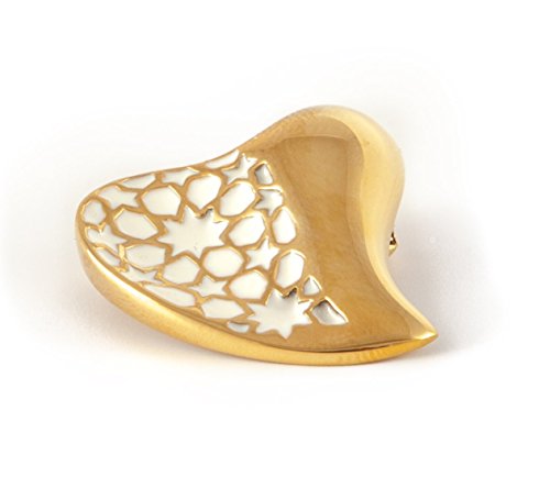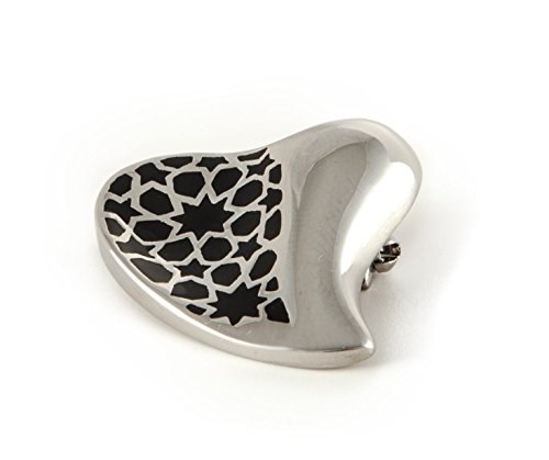 -. Title : Merdinger's PREMIUM Quality 18K Arabesque Heart Brooch| A Superb 18K Gold & Titanium Plated, Stainless Steel Necklace For Women w/ Black/White Enamel Inlay & Beautiful Arabesque Pattern
