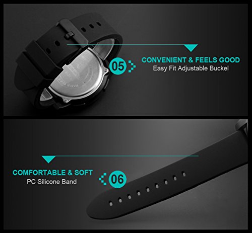 -. Feature : 164FT / 50M WATERPROOF FOR ALL WEATHER AND CLASSIC BLACK & RED CASE DESIGN: Shower, Swimming, Hand-Wash, No Problem! Unique dynamic dial design lead you the the edge of sport watch. Perfect for all kind of sports, indoor and outdoor activities or daily daily use. NOTE: please DO NOT press any buttons in the water. / KEY SCRATCH RESISTANT WATCH FACE AND SHOCKPROOF CASE WITH 1 YEAR MANUFACTURER WARRANTY: high hardness resin glass protect you from daily scratch, shockproof PC Poly-Carbonate front case make it suitable for all kind of sports. / STOP WATCH, LED BACK LIGHT, CALENDAR, MULTI-FUNCTIONAL: with 1/100 chronograph, LED back light for night, calendar week/month/date and alarm, what are you waiting for? For the P.R.Ice of a cheap meal, get a few for yourself or send as gift to friends and family, this is a great value you don't want to miss. / COMFORTABLE AND DURABLE: PC Poly-Carbonate Silicone soft band strap with stainless steel case cover will bring you excellent wearing experience and comfort. Our particular attention to details will earn you respect or even praise from a dedicated sport watch snob. / WHAT IS IN THE PACKAGE: Aposon Sport Watch x 1, Instruction Manual x 1