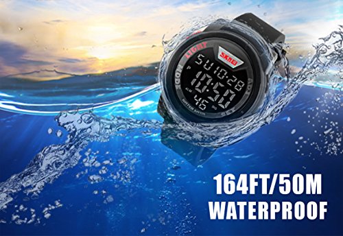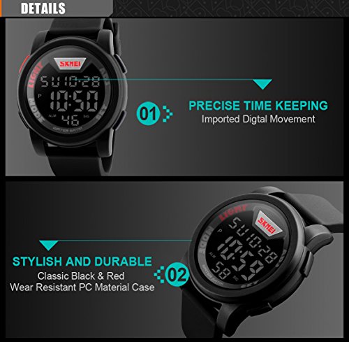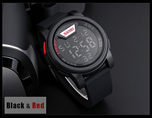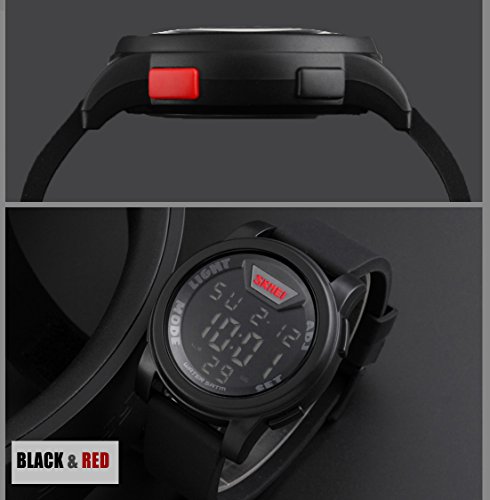 -. Title : Men's Digital 50M Waterproof Electronic Unique Round Outdoor Sport Watch Sillicone Band Heavy Duty Army Military 24H Time LED Back Light 164FT Water Resistant Calendar Month Date Day - Black & Red