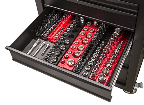 - DESIGN CONSIDERATIONS: This socket holder is designed to accept both deep and shallow 3/8” drive Metric sockets. A soft, rubberized covering over the bottom of the tray prevents damage to finished surfaces.