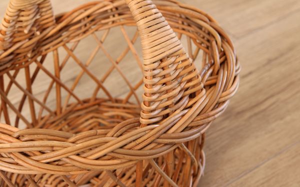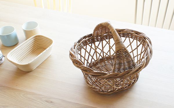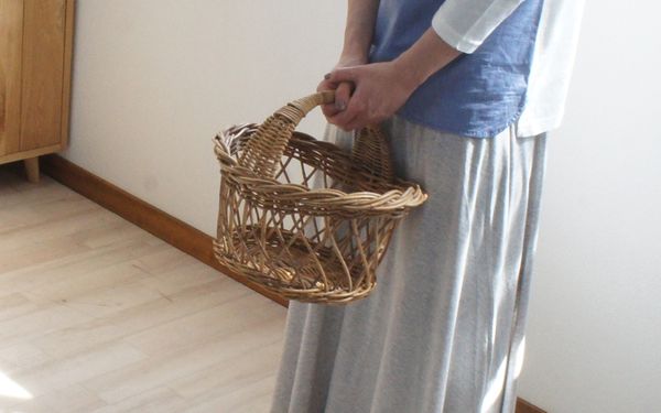 ●材料に皮付のラタンを使用して自然の風合いを味わえるバスケット。