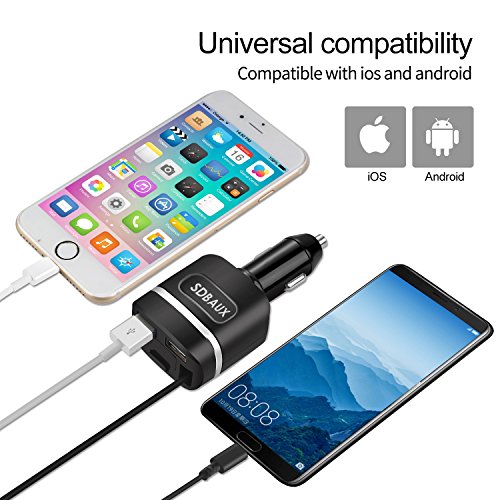 Compatibility SDB-1617CA-2U-C quick car charger with high performance, can charge three devices at the same time, can have quick charging function, it can be compatible with Samsung Galaxy S8 Plus, Note 4 / Edge, Huawei Nexus 6P , Pixel C, LG G6, HTC 11, iPhone X / 8 / 7S Plus, iPads; iPods and more.