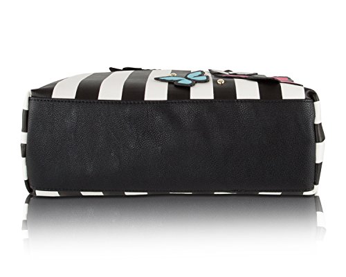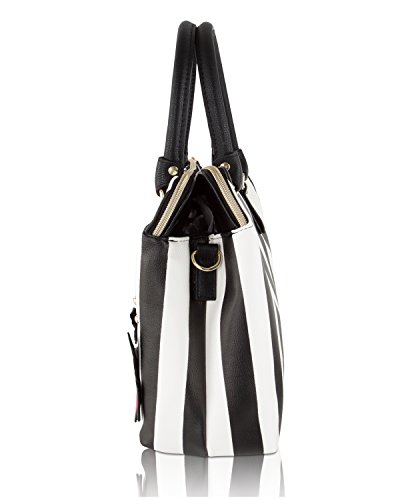 -. Brand : Betsey Johnson -. Department : womens -. Feature : Double zip compartment, Center Magnetic snap closure / Double Handles 5" drop, removable cross-body stap up to 23" drop / Quilted hear exterior, Front signature logo plate, removable Betsey key chain / Fully lined interior center compartment features back wall zip pocket and 2 slip pocket / Top Handle Bag: 13" x 10" x 5" Inches (WxHxD) -. Model : BR24615 -. ProductGroup : Shoes -. ProductTypeName : HANDBAG -. Size : One Size -. Title : Betsey Johnson Be Mine Multi Compartment Tote Shoulder Bag