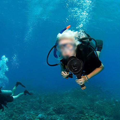 Package Included: 1 x Dome Port (without waterproof housing case)+1 x Floaty handle pole (Kindly note:The waterproof housing case is not included.Please pressing harder between the dome port and the camera housing case,and screw down the screws and test before diving)