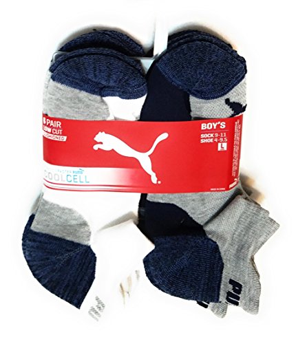 -. Feature : Puma boys 6 pairs of low cut cool cell athletic socks / Moisture control, arch support and cushioned sole / 96% Polyester, 2% Rubber, 2% Spandex / Machine washable