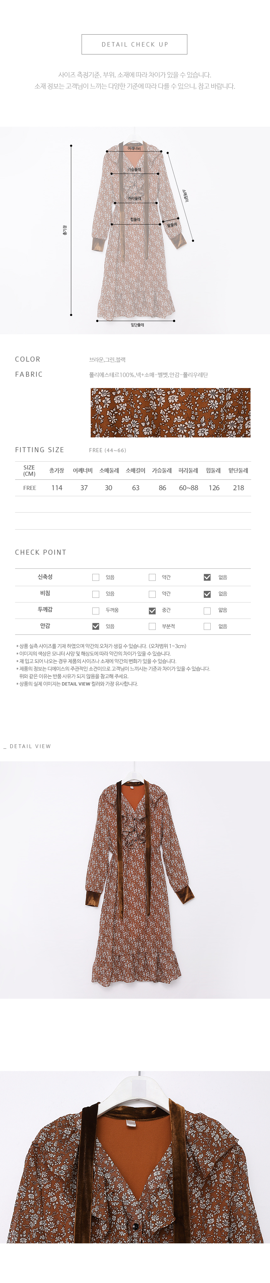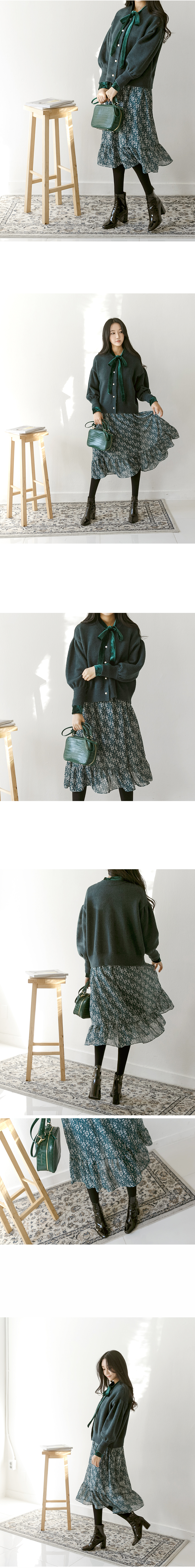 잔잔한 플라워 패턴의 폴리 소재로 살랑살랑 날리는 느낌이 사랑스럽고 안쪽에 들어간 포근한 기모 안감으로 한겨울에도 멋스럽게 입기 좋은 원피스랍니다~