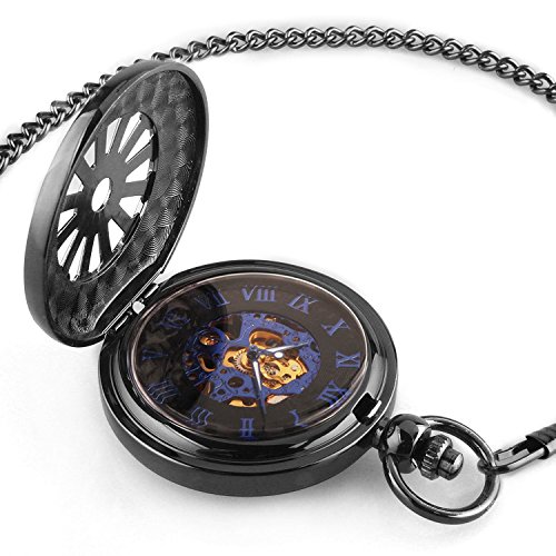 -. Feature : Carrie Hughes official mall sale. 100% brand new and high quality. Package includes: 1 x Pocket watch,1 x Chain,1 x Blue Gift box, 1 x Operating instructions. / Mechanical hand-wound movement(Magnetic field / temperature and impact will affect the accuracy of the watch, Daily manual winding and adjustment can reduce the deviation) / Elegant appearance: Gold skeleton design, insight to the movement,Roman blue temptation / Beautiful glass back of the watch for view of the movement,Case size: ( Diameter: 1.85 in , Thickness: 0.6 in) / Completely skeletonized and engraved,With mens watch chain to attach to your shirt or pants