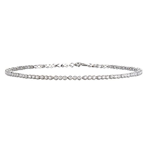 -. Title : Rhodium Plated Silver White Cz Line Anklet-10"