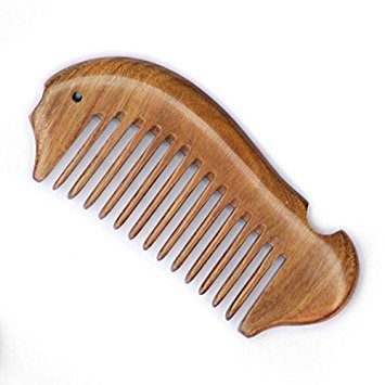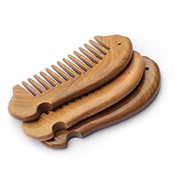 EQLEF® Fish shape Beard Comb Wooden Comb wide Tooth Green Sandalwood Pocket Comb Small Hair Comb Hair Brush