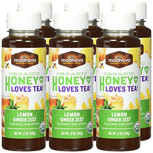 Madhava Naturally Sweet Organic Honey Loves Tea, Lemon Ginger Zest, 12 Ounce (6 Count)