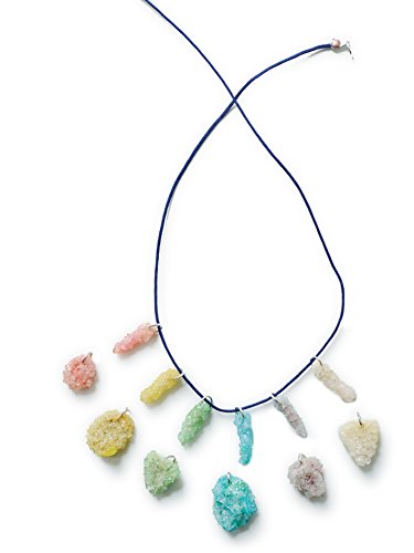 Comes with crystal growing powder, dye tablets, pipe cleaners, crystal glaze, necklace cord, nylon thread, cord ends, clasps, jump rings, earring wires, ring blanks, gold craft wire, craft sticks, gold glitter