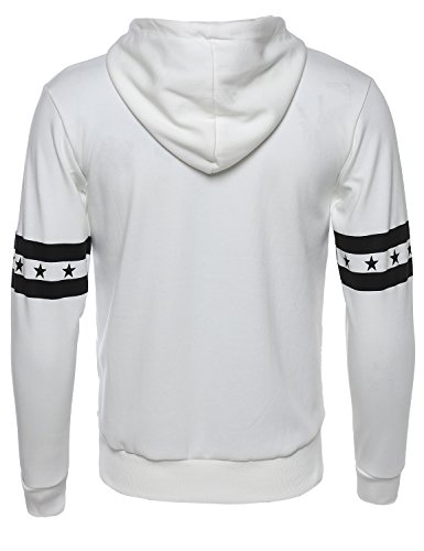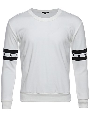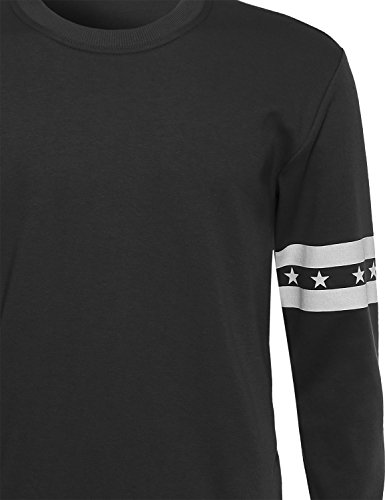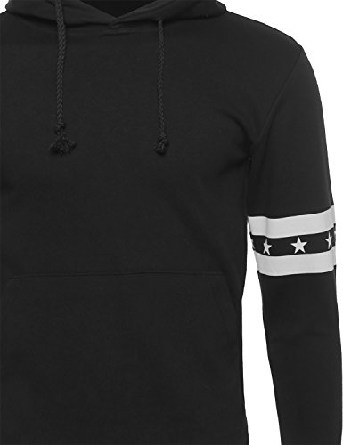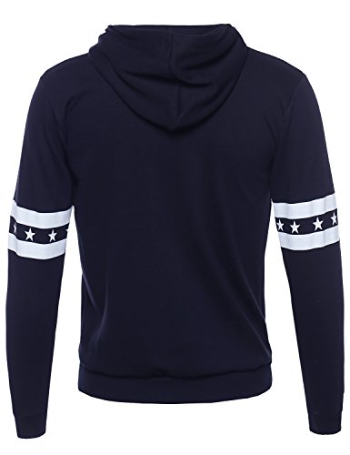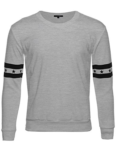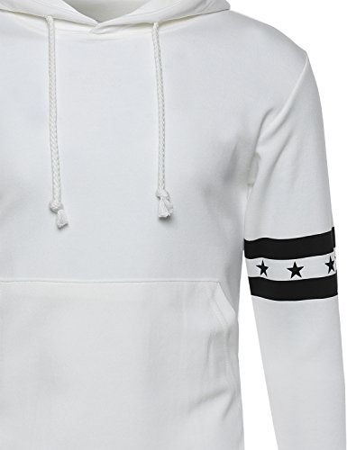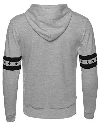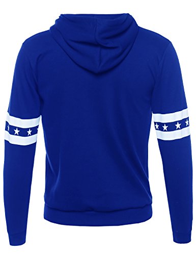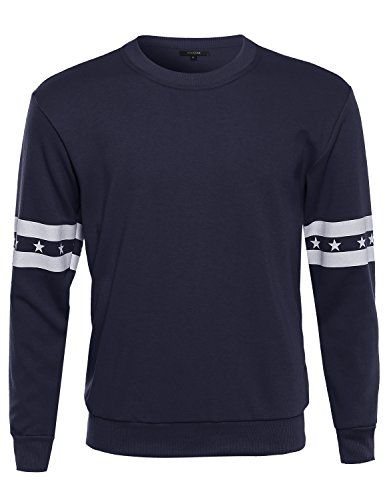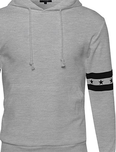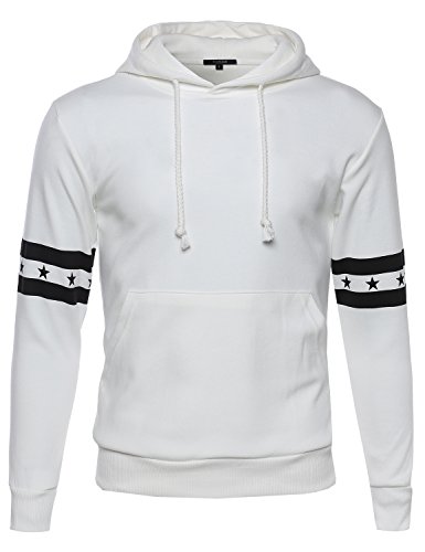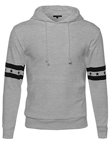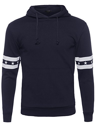 (KMOHOL0115) This long sleeve sweater features a crewneck, long sleeves, attached hood, drawstrings, and stars and stripe design on each sleeve.(KMOSWL0130) This long sleeve sweater features a crewneck, long sleeves, and stars and stripe design on each sleeve.