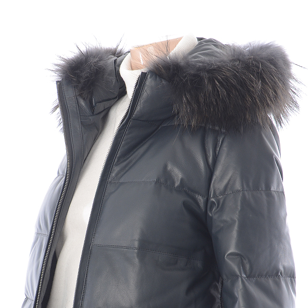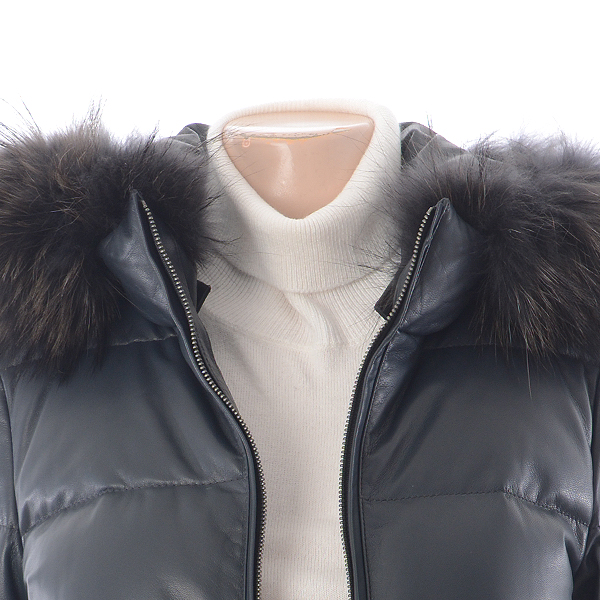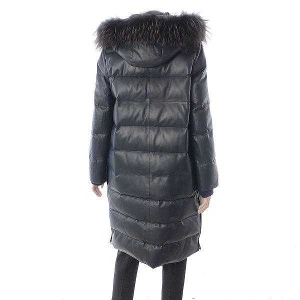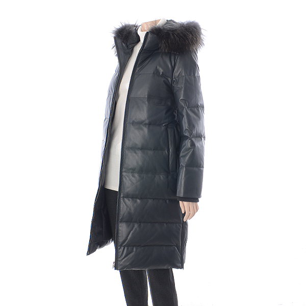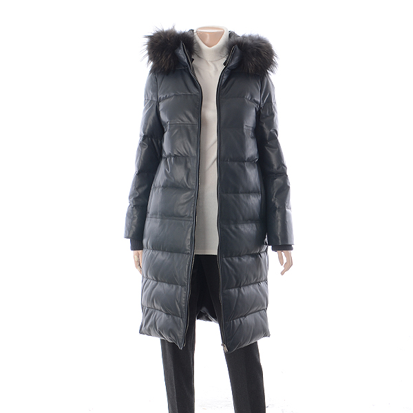 후드가 탈부착 되는 양 가죽 롱 다운코트