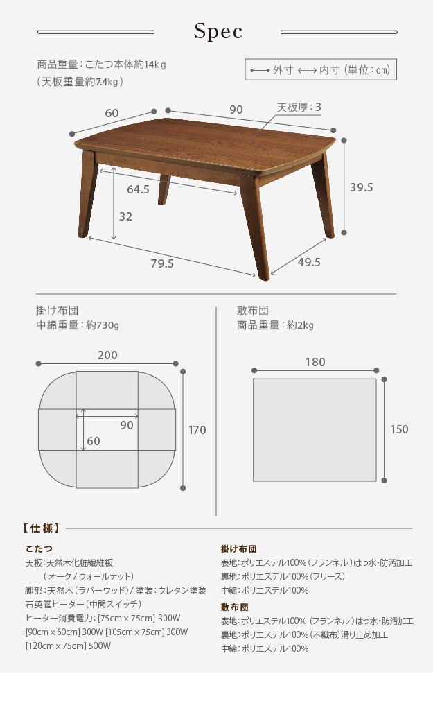 天板:天然木化粧繊維板(ウォールナット/オーク)