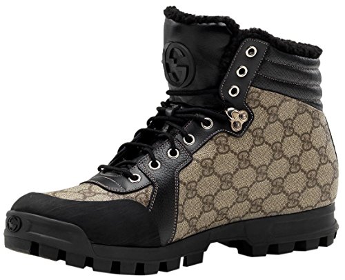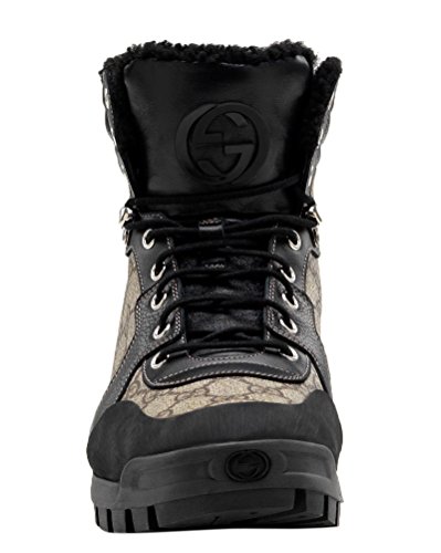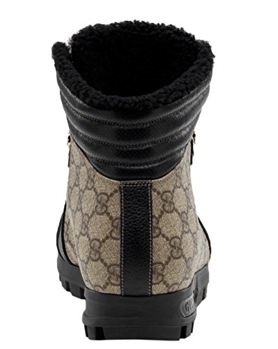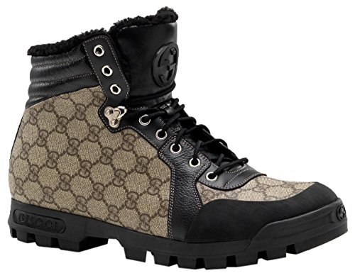 Product Description Gucci Men's Black Leather GG Guccissima Lace-Up Fur Boots Shoes Made in Italy Beige/Ebony GG plus with black leather and fur trim Rubber Interlocking GG detail Rubber Lug sole tag size G7 =?US 8