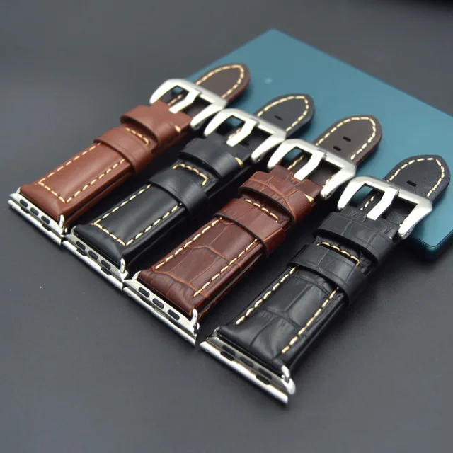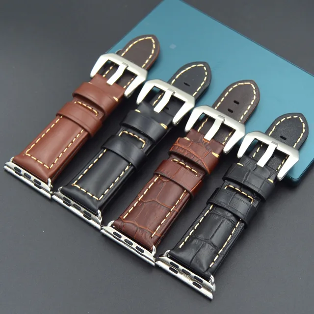 | [해외] 38 미리메터 42 미리메터 럭셔리 정품 송아지 가죽 시계 스트랩 IWatch 시계 밴드 스테인레스 스틸 버클 어댑터 벨트 애플 시계 |