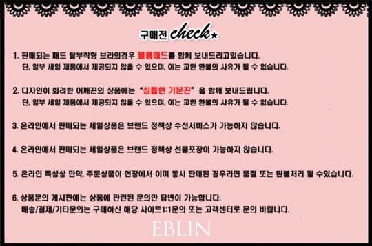 브라: 나일론 95%, 폴리우레탄 5% 안감) 면 100%