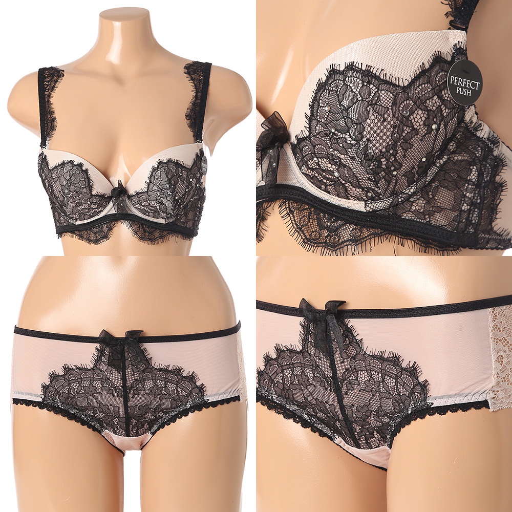 피치블랙_수입몰드 브라 레이스팬티 세트