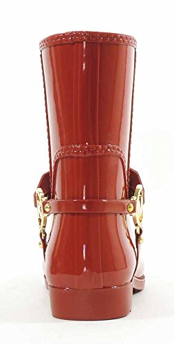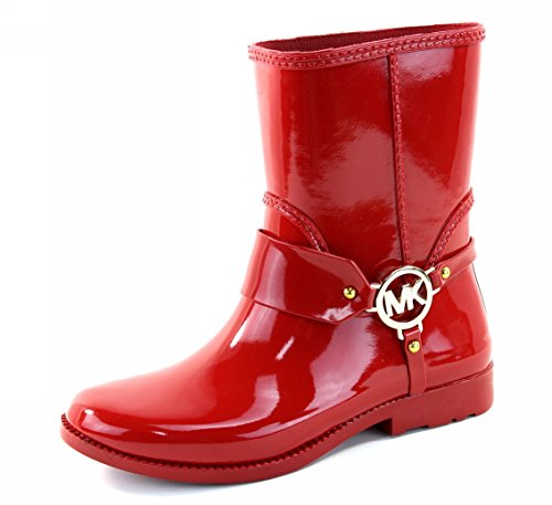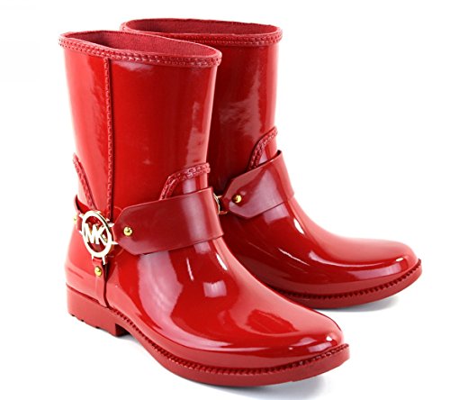 (Michael Kors)/Women's/Boots/DIRECT FROM USA/Michael Kors Fulton Harness Womens Red Rubber Mid Rain Booties