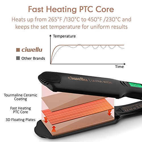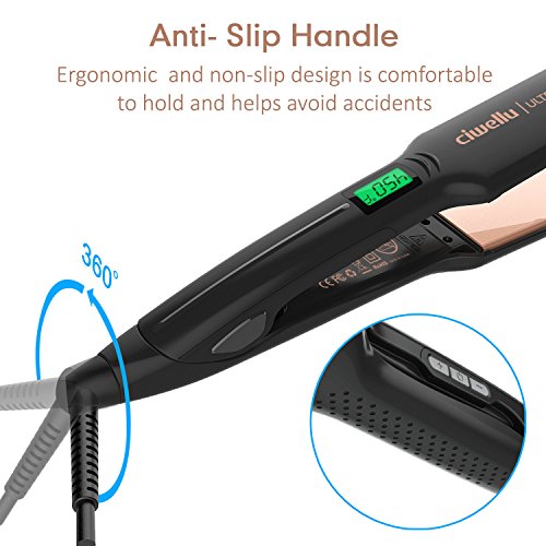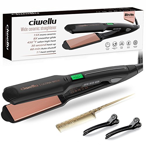 Ciwellu Flat Iron Hair Straightener 1.75 Inch Ceramic Tourmaline Plate Professional Straightening Hair Iron with LCD Digital Display, Adjustable Temperature &...