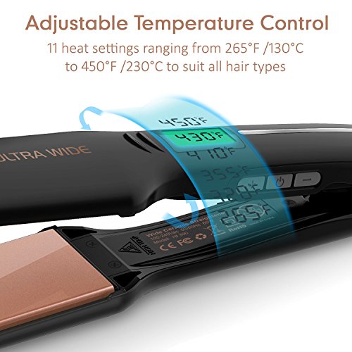 【ADJUSTABLE HEAT SETTINGS】Choose from 11 settings on an LCD digital display, ranging from 180°F to 450°F (130°C - 230°C) to suit all hair types