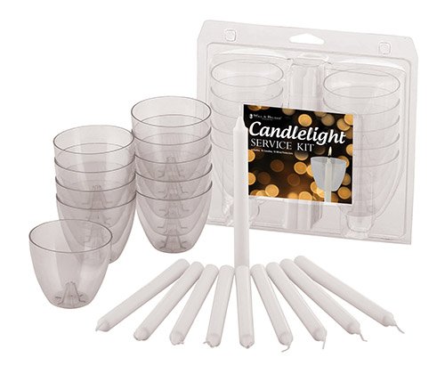 Candlelight Service Kit with clear wind protectors - includes 10 candles and 10 bobeches