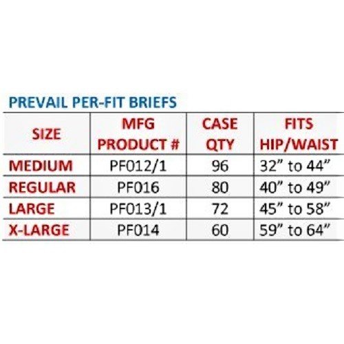 -. Binding : Health and Beauty -. Brand : Prevail -. Feature : For Moderate to Heavy Protection / Cloth Like Outer Fabric - Quiet and Comfortable / Easy-Lock Fasteners Grip Securely, Anywhere on the Brief / Advanced Zoning System for best control of fluids and fecal material -. IsAdultProduct : 0 -. Label : First Quality -. Manufacturer : First Quality -. Model : IDRX60 -. MPN : IDRX60 -. PackageQuantity : 1 -. PartNumber : IDRX60 -. ProductGroup : Health and Beauty -. ProductTypeName : HEALTH_PERSONAL_CARE -. Publisher : First Quality -. Size : X-Large -. Studio : First Quality -. Title : Prevail Per-Fit Adult Briefs, Size X-Large, Full Case of 60 (148-5234)