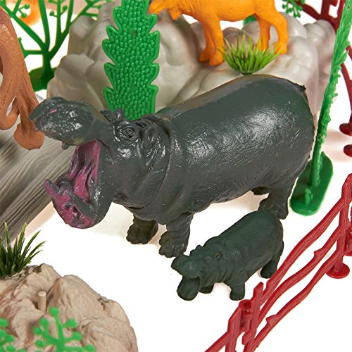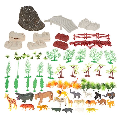 -. Feature : FULL SET OF ZOO ANIMALS AND FAKE PROPS: This full set of 100 zoo animal toys includes 29 grass props, 20 free standing trees, 20 fence props, 9 rock props, a bridge, 1 rigid rock prop, and 20 animal figurines. The full range of animal toys includes a zebra, tigers, an elephant, a polar bear, a leopard, a lion, a hippo, a giraffe, a moose, a camel, and a gorilla / A FUN AND EDUCATIONAL GIFT: Not quite sure which gift to give to your curious son or daughter? Get yourself these charming zoo animal figurines to inspire and give joy to your kids, nieces, nephews or other loved ones! / ZOO PARTY TIME: Planning a kids zoo-themed birthday party? Look no further for the necessary party supplies than this decorative zoo animal set to really take your party decor to a jungle! / EDUCATE AND INSPIRE YOUR CHILDREN: As well as being a fun toy set, this zoo animal set makes for an excellent educational tool for inspiring a love of learning about our fellow animals in young children / DIMENSIONS: 10.5 x 6.7 x 8.2 Inches
