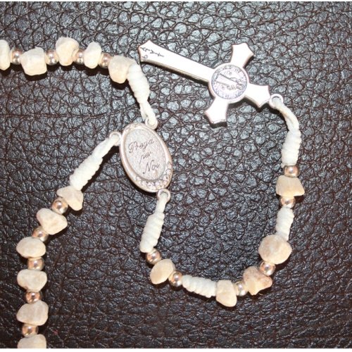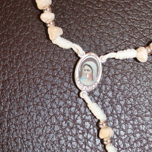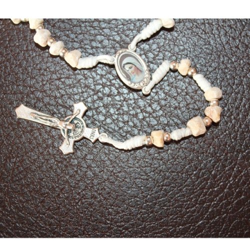 A very special Rosary made with stones carved into beads and cut first from Apparition hill - PODBRDO MEDJUGORJE area. Stones are rocks are collected from all over the apparition Hill - Podbrdo and then drilled manually with hands to the desired shape and size!! Medal on gift card is SILVER PLATED which fit to each hand and you can always carry with you ,so dear God & Our Lady can protect us !!! This Rosary is made and shipped from Medjugorje directly. Comes with Silver beads, medal and Cross. Has St. benedict Crucifix as shown and Our lady of Peace center. Peace Peace Peace - Nir Nir Nir. Read more about our Lady of Medjugorge.