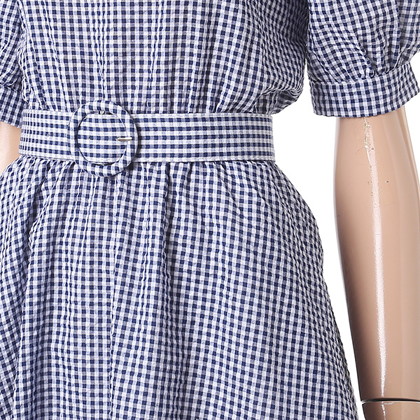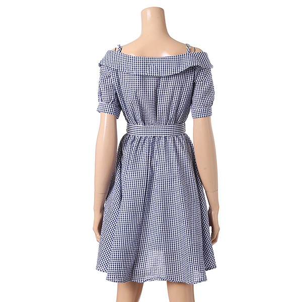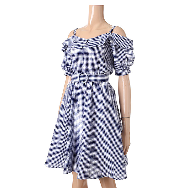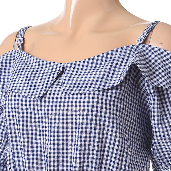 오프숄더와 체크 패턴으로 시원함과 여성스러움을 강조해주며