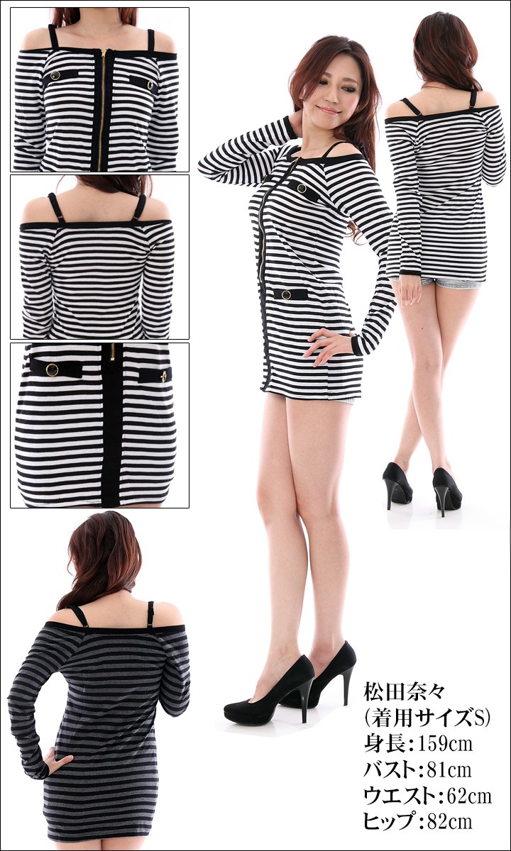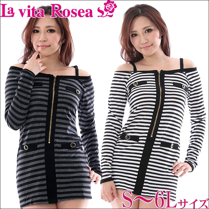 ボーダーハーフジップアップワンピース(RG) 大きいサイズ 春 セクシー レディース ギャル服 ギャル 大人 13号 15号 17号 19号 LL 2L 3L 4L 5L 6L 6L
