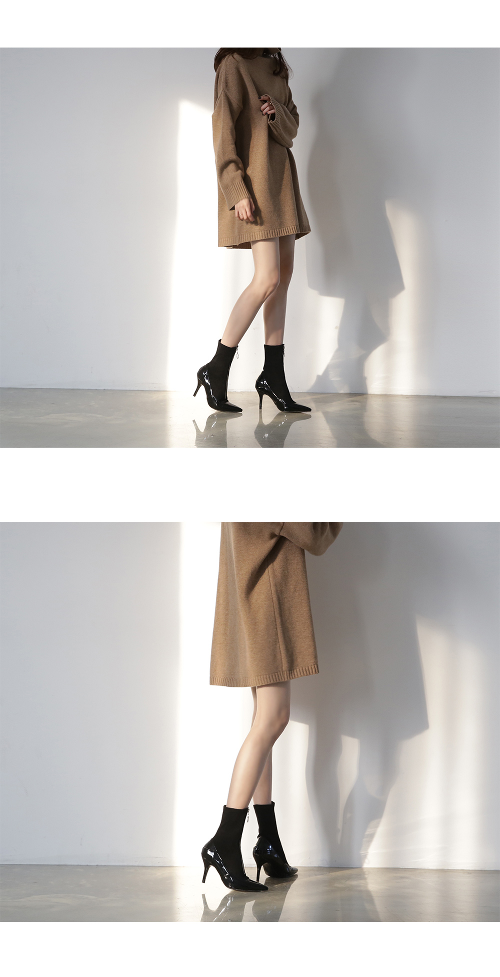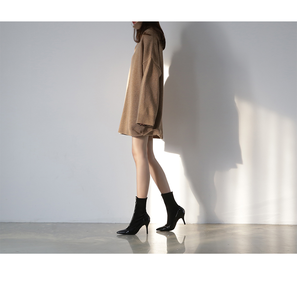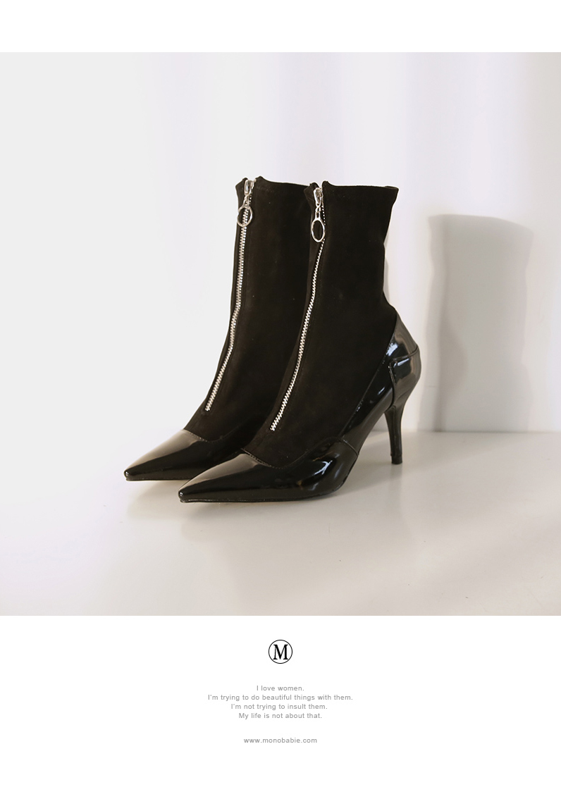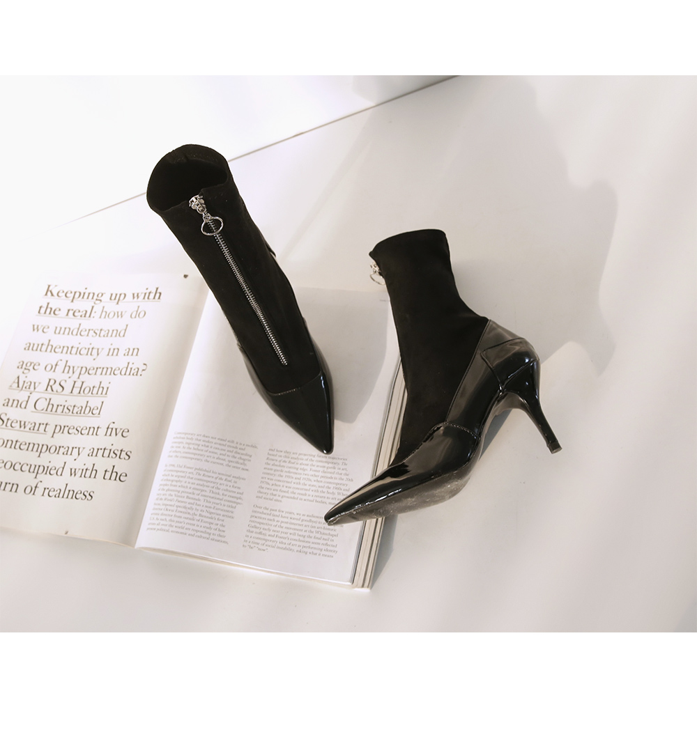 발전체에 타잇하게 핏되는 삭스타입의 디자인으로 매끈한 에나멜소재와 플러피한 스웨이드소재가 만나면서 독특한 느낌을 선사해줍니다.