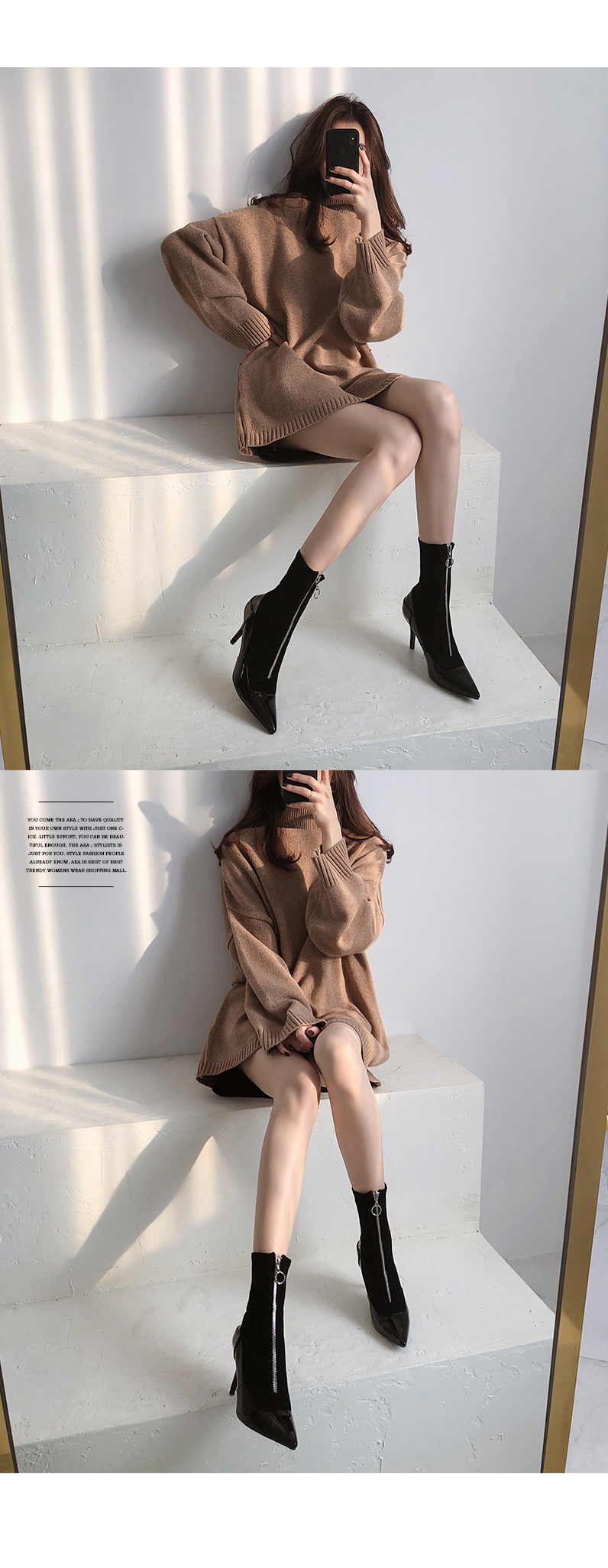 시크한 분위기의 스틸레토쉐입 앵클부츠입니다.