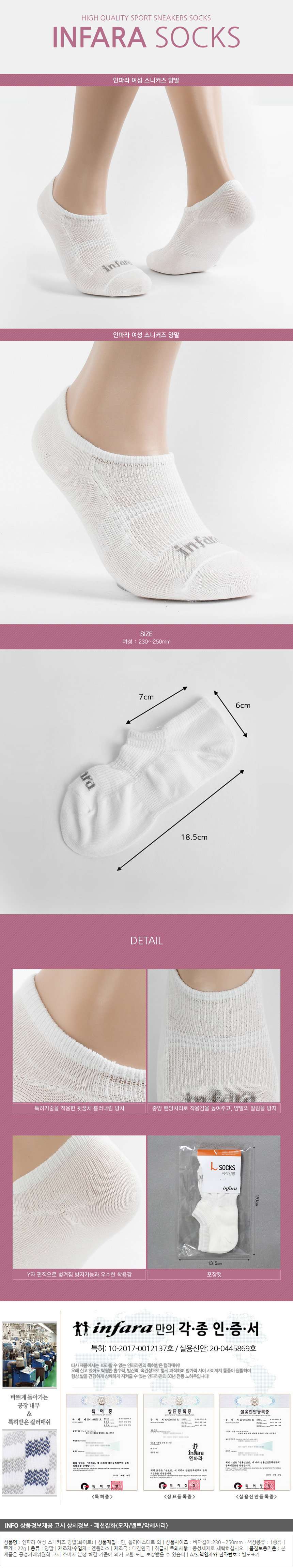 <상품명 : ZP8 인파라 여성 스니커즈 양말(화이트)>