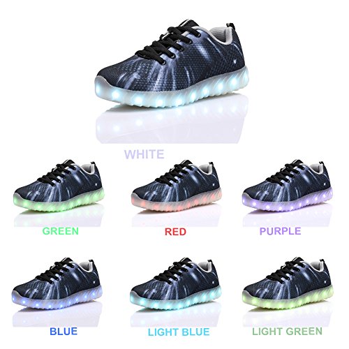 -. Feature : Style:fashion and popular LED sole with seven different colors / Material:made up of colorful fly knitted upper and flexible durable sole / Popularity: ideal shoes for Gift,Party,Festival,Birthday,Christmas,Evening Riding etc. / Convenient:Easy charge like your cell phone connected with the USB charging cable. / Light Modes:The totle of 7 colors with 11 different modes.