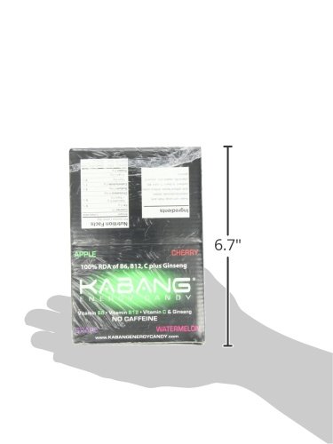 ReleaseDate : 2014-06-08 Studio : Kabang Energy Candy Publisher : Kabang Energy Candy Binding : Grocery Product Description Kabang Energy Candy is the Elite in energy candy. Kabang is made in Italy with highest quality ingredients. Kabang is available in 4 unique flavors (Apple, Cherry, Grape and Watermelon) . As you get closer to the center you will then have a Blast of more flavor and Energy that Explodes in your mouth. Kabang Energy Candy contains 100% of the RDA of Vitamins B6, B12, C plus Ginseng. Kabang contains only 3 grams of Sugar only 15 Calories, only 5 Carbs, and No Caffeine. Finally a great tasting Energy Candy, that Kids adults can have without the jitters. Plus it's good for everyone. 0