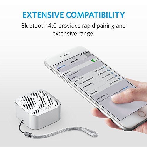 Anker SoundCore nano Bluetooth Speaker with Big Sound, Super-Portable Wireless Speaker with Built-in Mic for iPhone 7, iPad, Samsung, Nexus, HTC, Laptops and More - Silver