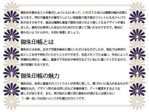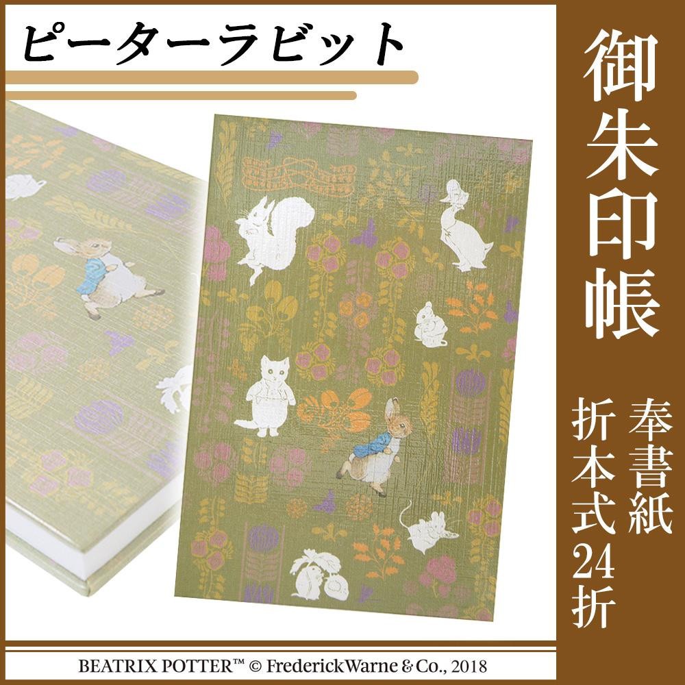| 大人のイメージと和を感じさせる、ピーターラビットの御朱印帳。表紙にPP貼りをしているので丈夫で長持ちするようになっています。中紙の奉書紙には「伊予紙」を使用し、墨や朱印が染み込みやすくサイズも通常より大き目です。 |