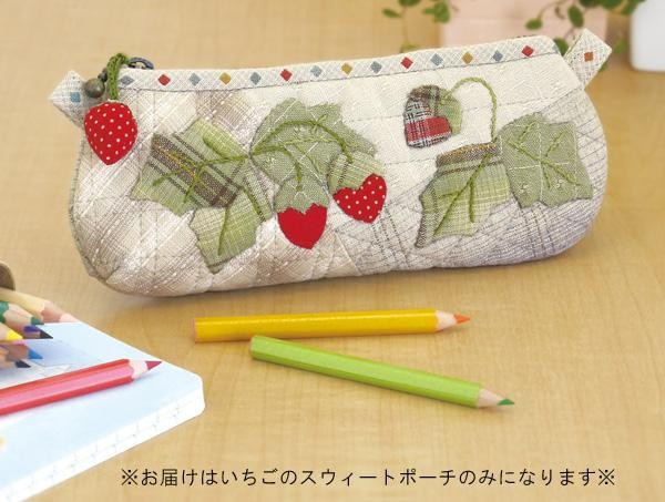| 真っ赤ないちごが可愛いポーチが作れるキットです。ファスナーには、リアルないちごの飾り付き。ペンケースやメガネケースとしても使えます。やわらかな陽射しの中にいるような優しい色合いは自然と心がなごみます。 |