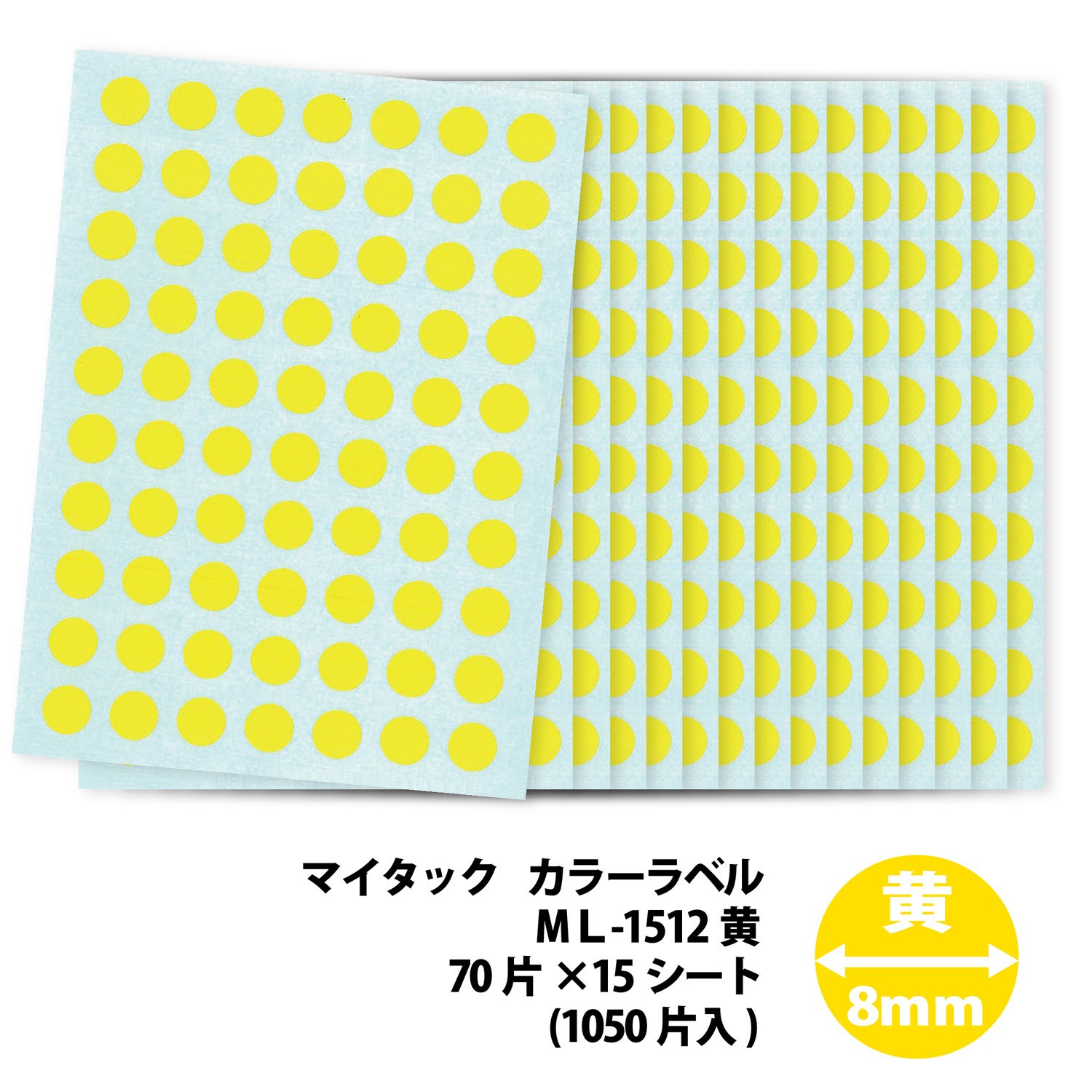 【サイズ】直径8mm 【入数】70片×15シート(1,050片入) 【基材】上質紙 【粘着剤】アクリル系 【ご注意】プリンタは対応してません