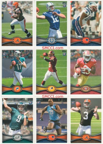 Loaded with 110 rookie cards total including Andrew Luck, Robert Griffin III, Brandon Weeden, Ryan Tannehill, Russell Wilson, Alshon Jeffery, Eric LeGrand, Mark Barron, Chandler Jones, Fletcher Cox, Michael Floyd, Tavon Wilson, Coby Fleenor, LaMichael James, Trent Richardson, Justin Blackmon, Nick Foles, Dont'a Hightower, Morris Claiborne, Kellen Moore and many more!