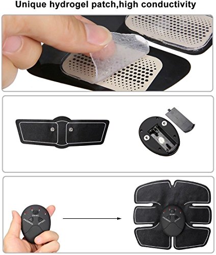 -Each EMS machine can be individually adjusted mode and intensity.You can also use 3 abdominal muscles posted simultaneously, to adjust the required mode and intensity respectively. -Adopting EMS technology£ºEMS (Electrical Muscle Stimulation), which builds muscles through the skin, it is recognized as an effective method of training muscles. - 6 exercise modes: It is suitable for abdomen, arms, waist, and legs. High-quality abs gel sheet, conductivity improves 30%. -Ultra-thin and compact£º You could get away with wearing this underneath a sweater if you wanted at work and no one would know it's there, so you get a great workout in just 20 minutes a day. -Easy to Use£ºDesigned with ergonomics targeting abdominal muscle exercise. Fix the fitness gear to the position where you want to strengthen your muscle. Just press the button to start the exercise.