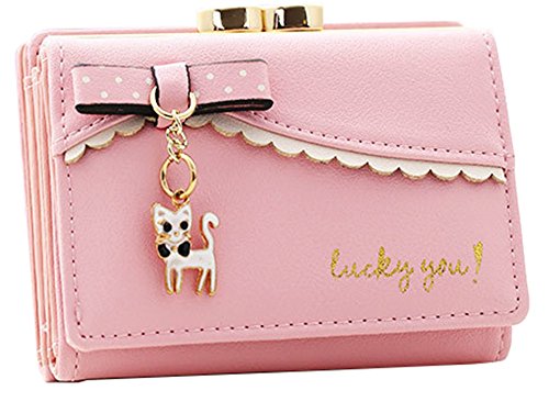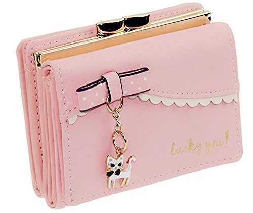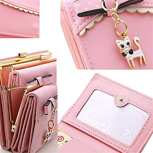 Damaier Leather Cute Cat Bowknot Kitty Wallet Card Holder for Womens Small Coin Purse